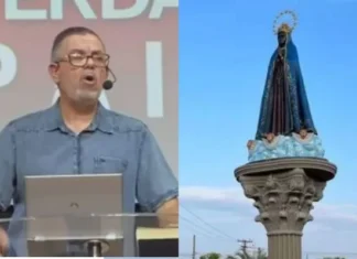Um pastor evangélico atacou verbalmente uma estátua de Nossa Senhora Aparecida que foi colocada na entrada da cidade de Bastos, no interior de São Paulo....