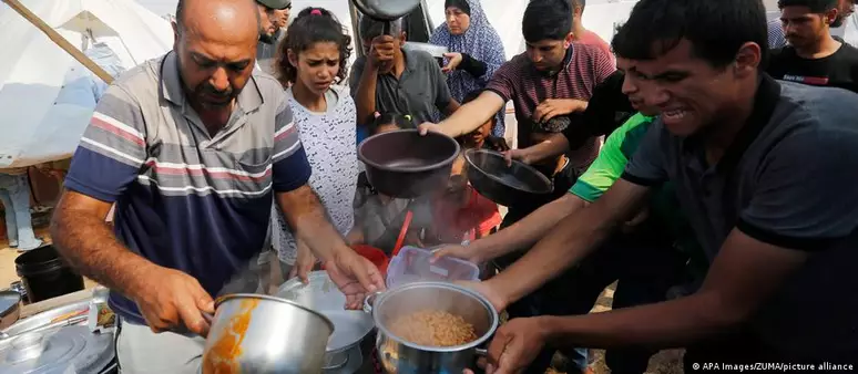 Distribuição de comida a refugiados palestinos pela UNRWA: agência fornece serviços essenciais em Gaza Foto: DW / Deutsche Welle