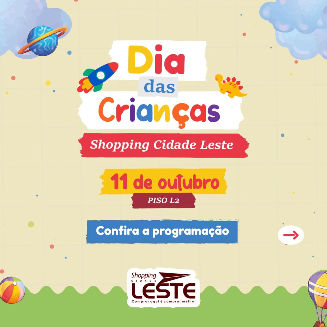 O Shopping Cidade Leste convida todas as famílias para uma celebração inesquecível do Dia das Crianças com um evento gratuito, repleto de diversão e surpresas, que acontecerá na sexta-feira, 11 de outubro. Com cinco horas de atrações, a tarde será marcada por oficinas interativas, pipoca, algodão doce e muita alegria!