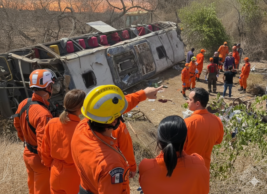 SÃO JOSÉ DA TAPERA, AL – Um grave acidente com um ônibus de turismo deixou 15 mortos e dezenas de feridos na manhã desta terça-feira (3), em um trecho da rodovia AL-220, no Sertão de Alagoas. O veículo, que transportava aproximadamente 60 passageiros, capotou na altura do Distrito Caboclo, em uma região conhecida como “Curva do S”.