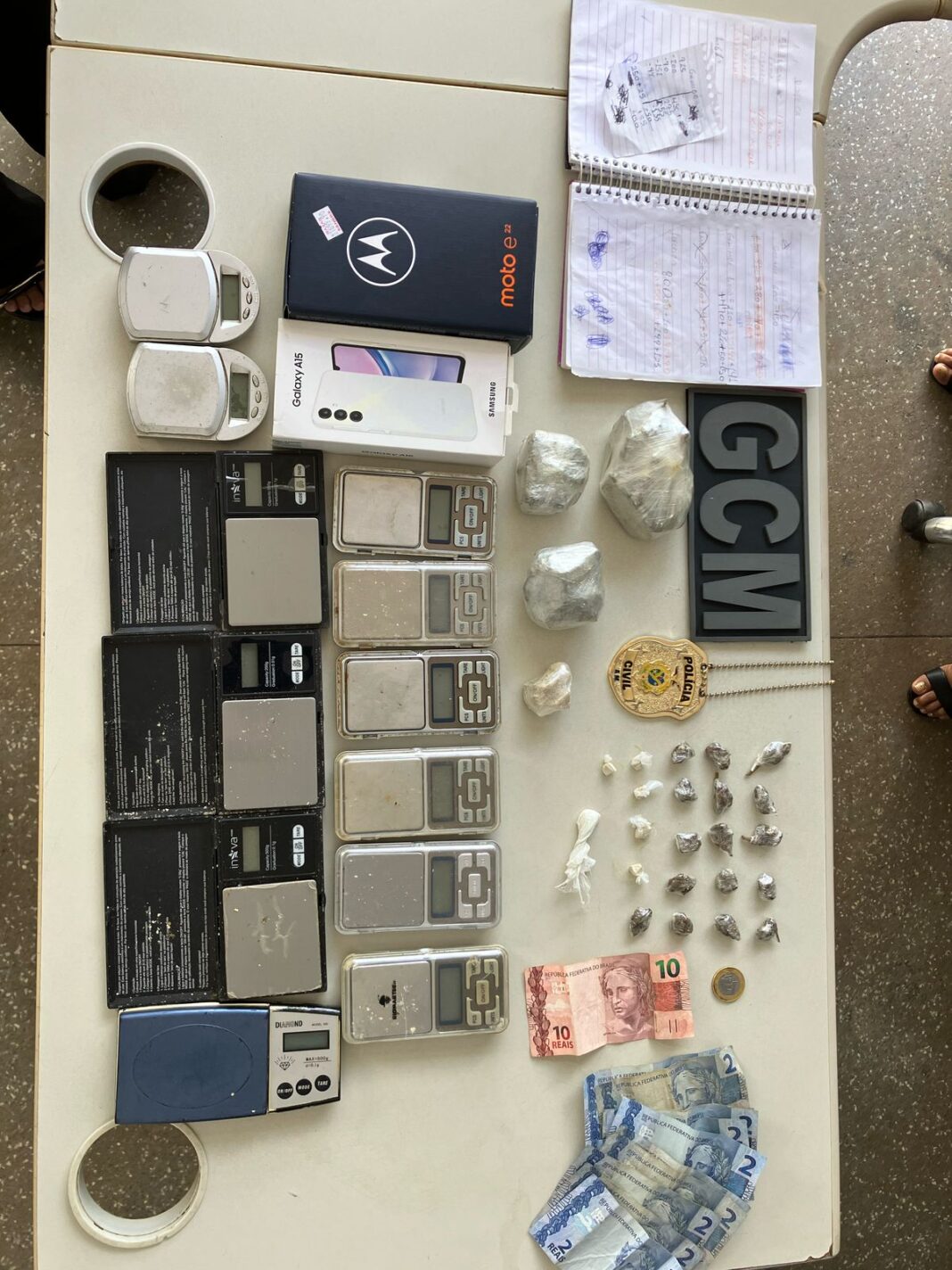 “Iniciamos as diligências e confirmamos que se tratava de Alessandra Gama Gonzaga. Ela já possui antecedentes por tráfico de drogas e associação para o tráfico. Com ela, apreendemos 26 trouxinhas de entorpecentes, uma porção média de cocaína, três porções de skunk, 12 balanças de precisão, dois aparelhos celulares, um caderno de anotações e R$ 32 em espécie”, informaram.