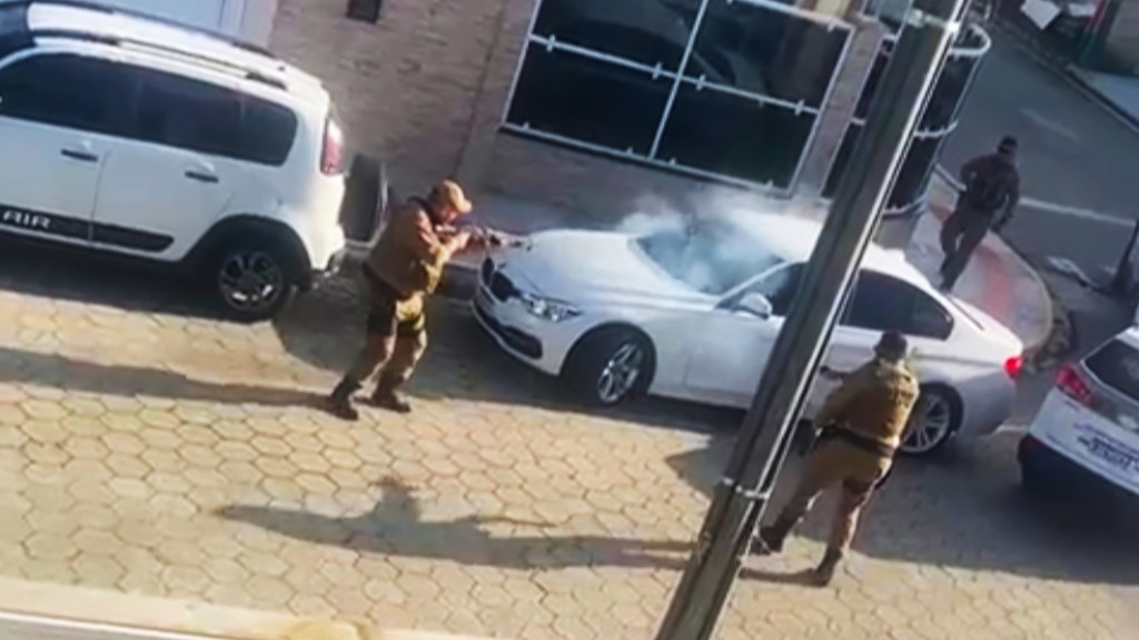 Diante da tentativa de fuga, os policiais fizeram uso de armamento não letal e, posteriormente, dispararam com armas de fogo para conter o suspeito.