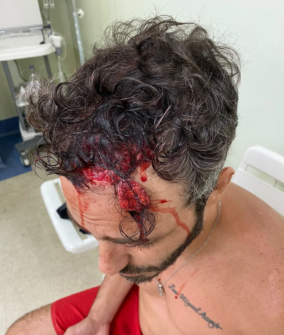 O ator faz o L Thiago Rodrigues, 42 anos, afirma ter sido espancado, ontem, no Baixo Gávea, conhecida região da Zona Sul do Rio de Janeiro. Ao sair de um bar, o ator foi cercado por cinco bandidos, numa tentativa de assalto.