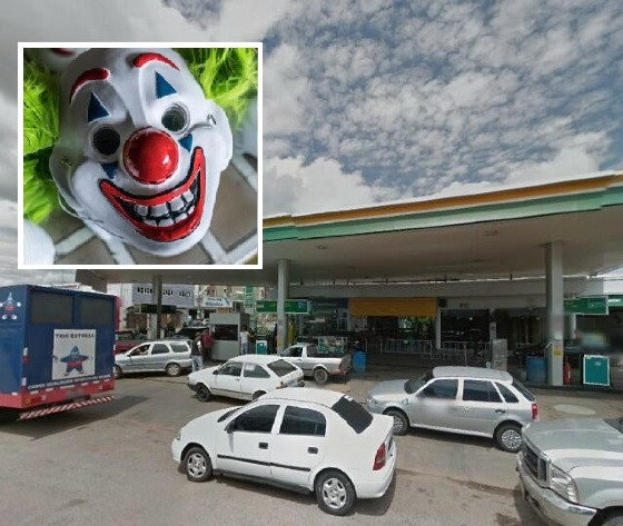 Segundo uma testemunha, de 36 anos, o ladrão chegou na Conveniência V8 do Posto Medalha II, por volta das 3h30, vestindo um moletom com detalhes vermelhos, bermuda escura e usava a máscara do palhaço vilão.
