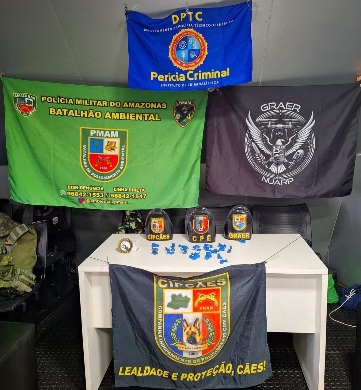 Em outra ocorrência, os agentes apreenderam entorpecentes na embarcação Recreio Barão do Aracá, oriundo do município de Barcelos e estava a caminho da comunidade do Unini. Durante a revista, o Cão de Faro Kratos, da Companhia Independente de Policiamento de Cães (CipCães), indicou que havia drogas no balaústre de madeira da embarcação. Foram apreendidas 29 porções pequenas de maconha tipo skunk.