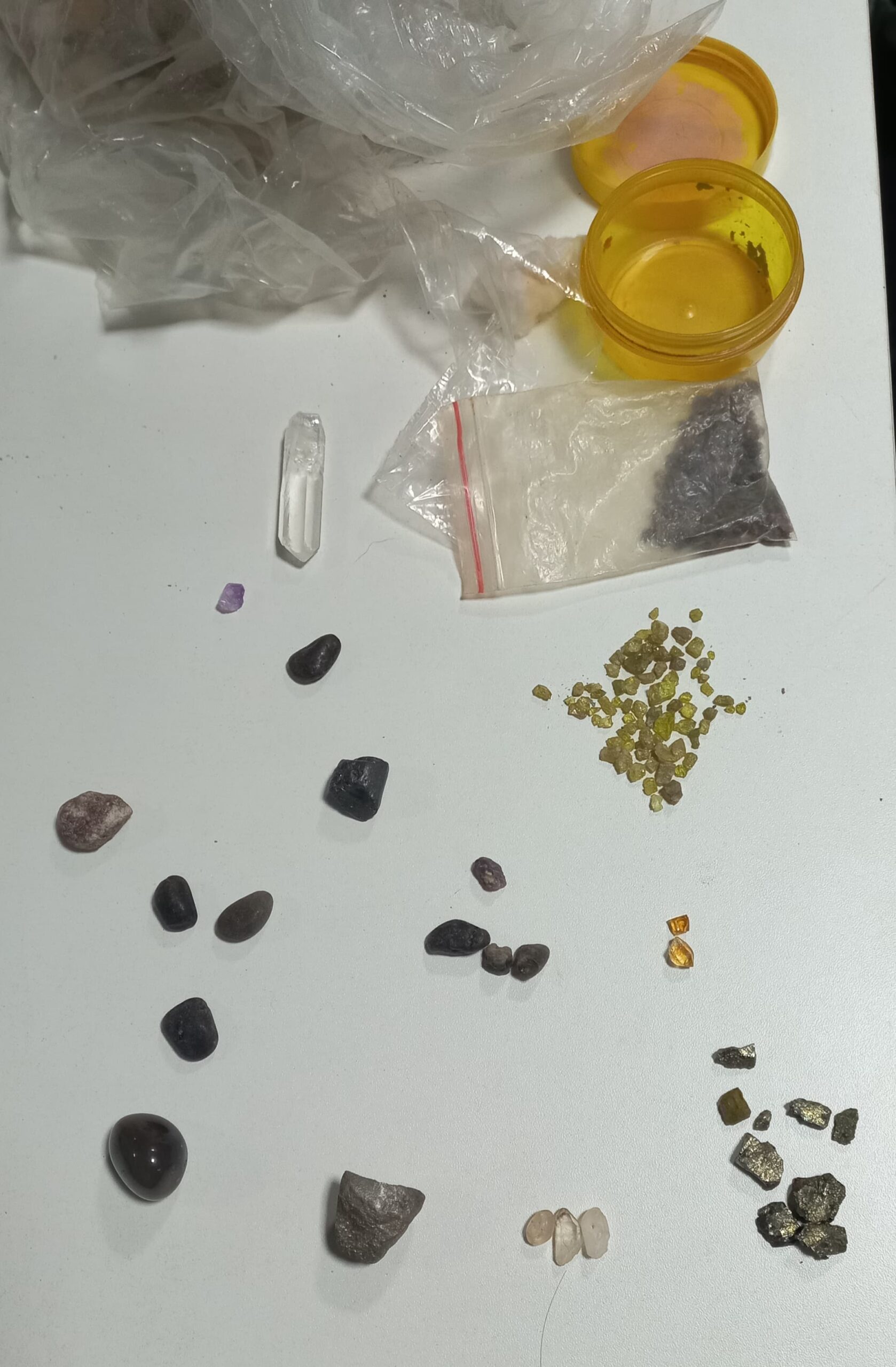 Após buscas, os policiais militares encontraram minérios em pedras de diversos tamanhos e em pó. Ao todo, foram apreendidas 450 pedras de coloração clara; 186 pedras pequenas; 170 pedras de coloração escura; 68 pedras supostamente ametista; e quatro porções de pedras pequenas.