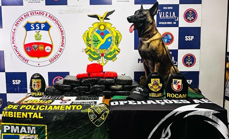Com auxílio da cadela Havana, a Polícia Militar do Amazonas em operação na Base Fluvial Arpão apreendeu, na manhã desta segunda-feira (16/10), cerca de 20 quilos de entorpecentes, entre cocaína e pasta-base de cocaína. Parte da droga foi encontrada escondida em uma esteira ergométrica, despachada como encomenda na embarcação Maria Monteiro com destino a Manaus, abordada em Coari (a 363 quilômetros da capital).