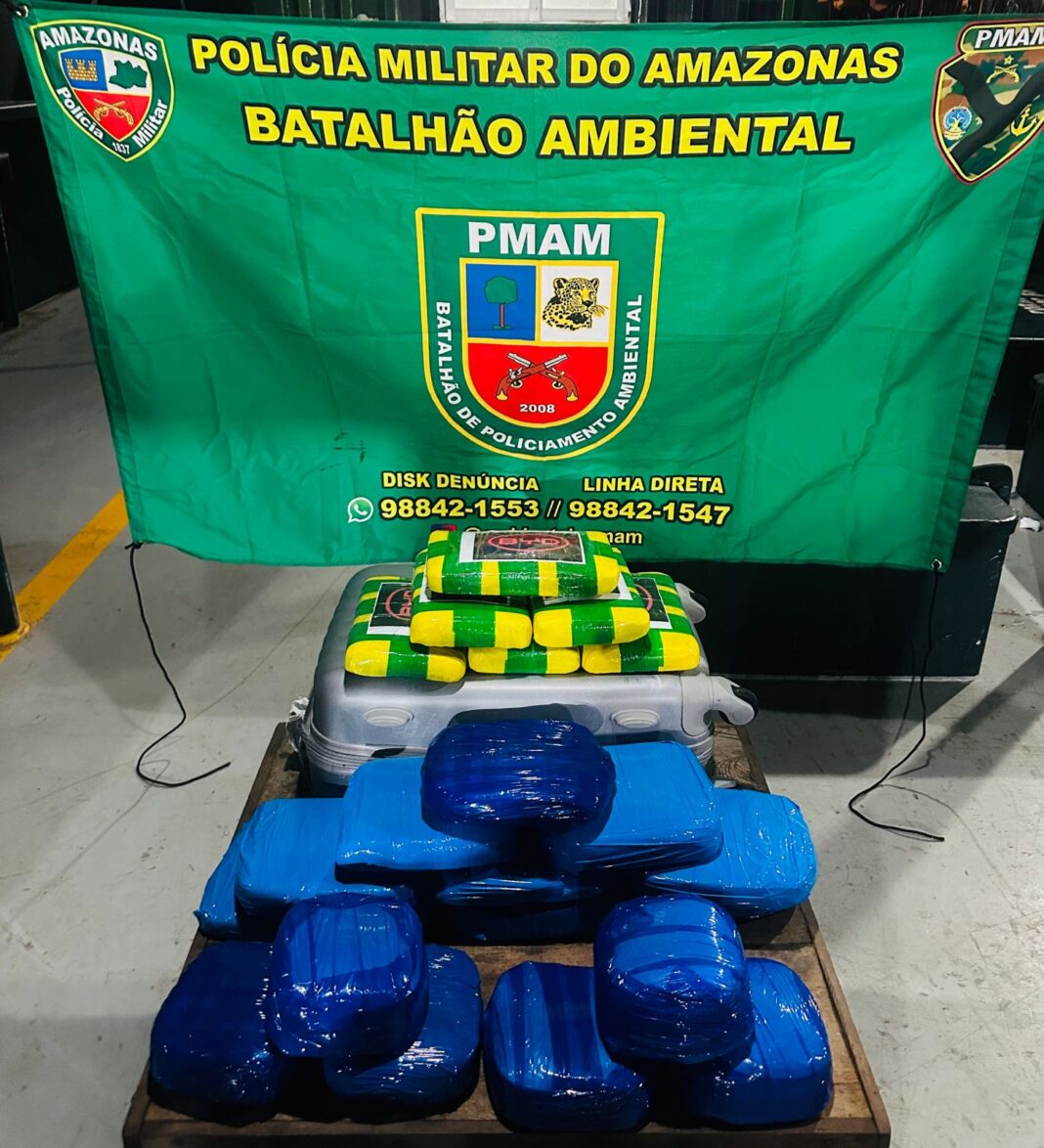 Ainda durante as buscas na embarcação e nos passageiros, os militares encontraram oito tabletes de entorpecentes embrulhados com fita azul. Leonardo Souza de Oliveira, de 27 anos, responsável pela mala, afirmou que não sabia o que carregava. Ele disse que receberia uma quantia de R$ 2 mil, após a entrega a um cidadão que aguardava no município de Tefé.