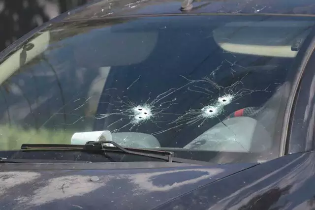 Cinco disparos atingiram para-brisa do carro onde vítima estava (Foto: Marcos Maluf)