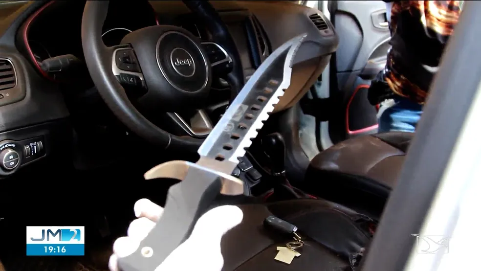 Faca foi encontrada dentro do carro do casal — Foto: Reprodução/TV Mirante
