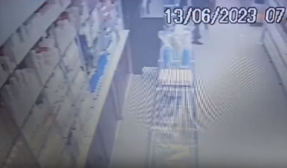 Câmeras de vigilância do local registraram o momento em que o suspeito aborda a funcionária do estabelecimento e anuncia a ação criminosa