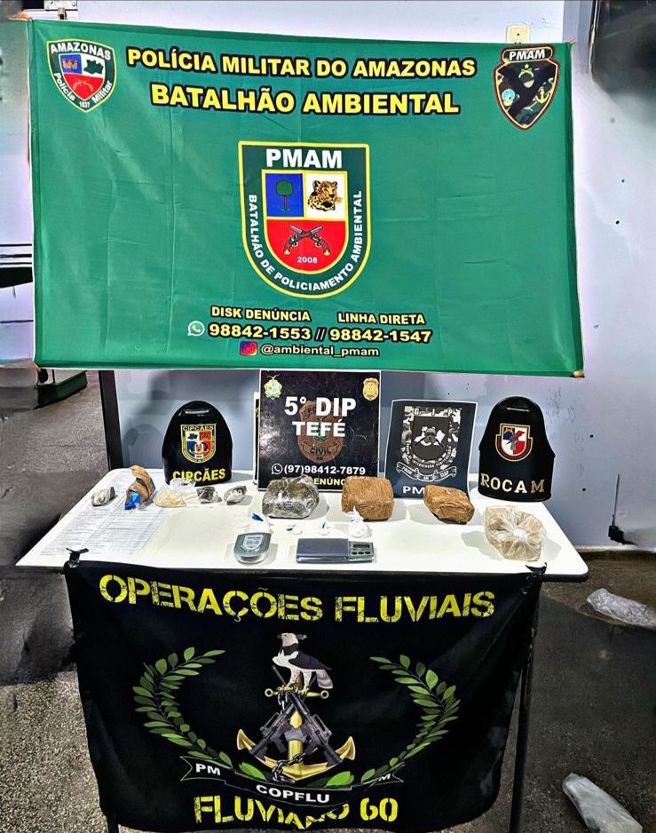 Um grupo criminoso foi preso em flagrante por envolvimento com o tráfico de drogas e associação criminosa, no município de Tefé (a 523 quilômetros de Manaus) durante a operação Fronteira Mais Segura da Secretaria de Segurança Pública (SSP-AM). A ação que ocorreu na noite desta quinta-feira (16/05) apreendeu drogas, balança de precisão e três motocicletas que eram utilizadas para a prática de crimes.