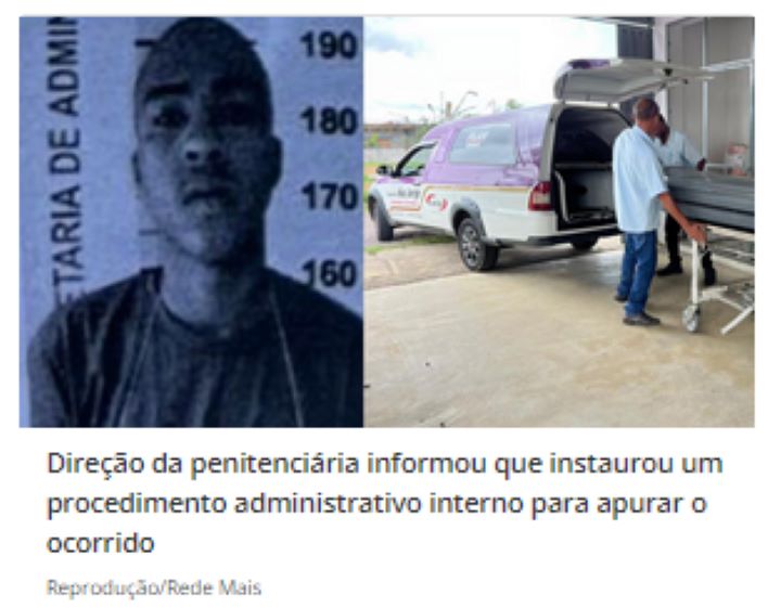 Deylon dividia a cela com outro preso, que assumiu a autoria do homicídio. Ele deverá responder pelo crime nas esferas administrativa e criminal.