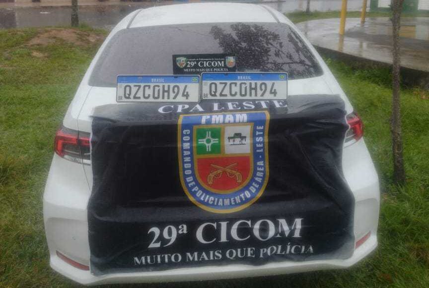 Por volta das 8h30, os policiais militares da 29ª Cicom foram informados, via linha direta, que um veículo cor branco e placa QZC0H94, estaria transitando na avenida Jardim Mauá, sem as placas de identificação.