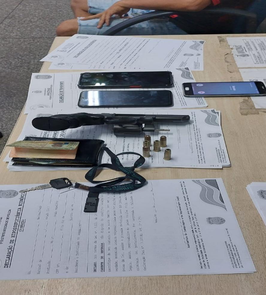 Ainda segundo a polícia, foi feita a abordagem e com eles foi encontrado um revólver calibre 38, três aparelhos celulares e duas mochilas com documentos dentro. Momento em que ligaram para um dos telefones, que era fruto dos crime.