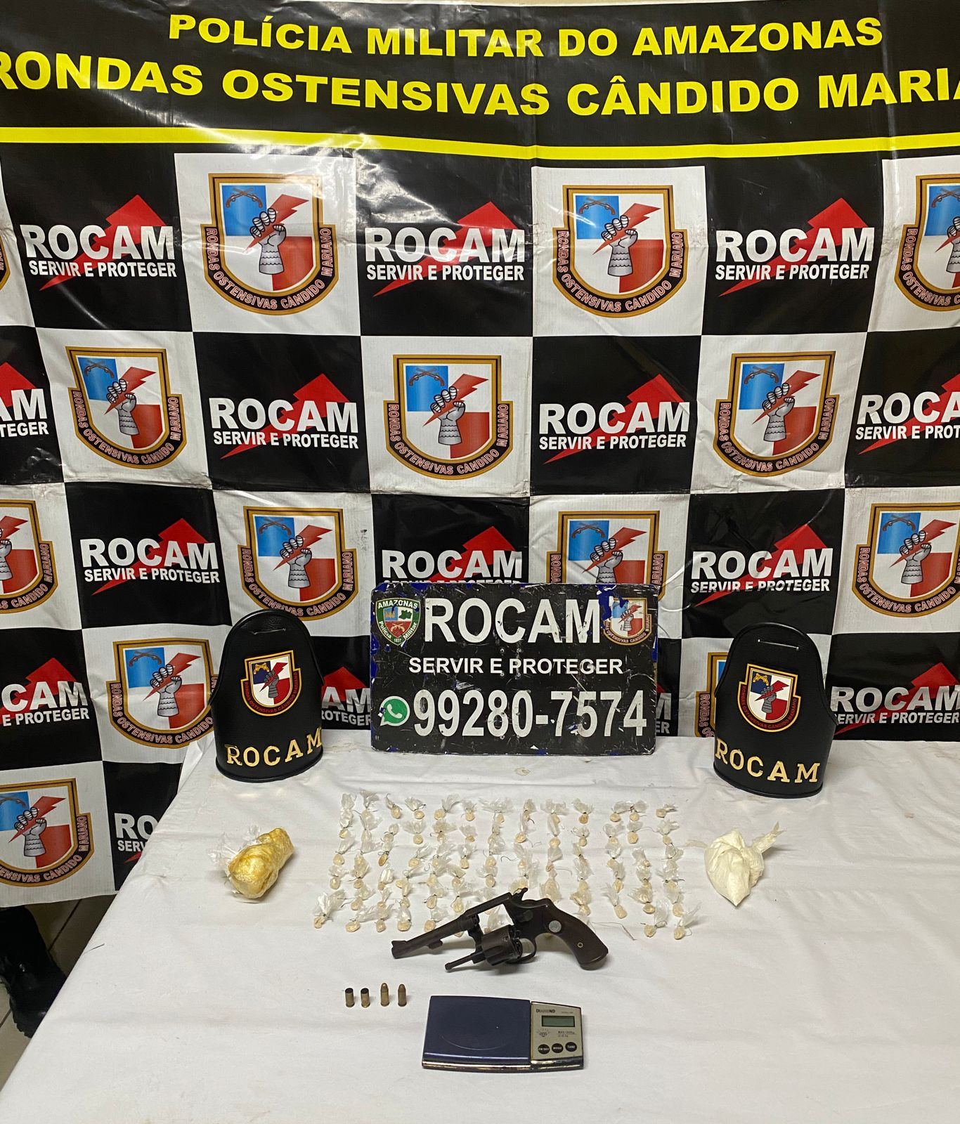 Durante Operação Paz, a Polícia Militar do Amazonas (PMAM), por meio das Rondas Ostensivas Cândido Mariano (Rocam), apreendeu, na tarde do sábado (23/09), arma e entorpecentes, no município de Iranduba (a 27 quilômetros da capital).