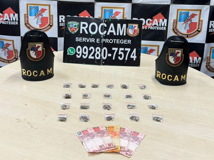 A Polícia Militar do Amazonas (PMAM), por meio das Rondas Ostensivas Cândido Mariano (Rocam), prendeu um homem, de 18 anos, e apreendeu entorpecentes e dinheiro. A ocorrência foi registrada na noite de quinta-feira (1°/8), no bairro Compensa, zona oeste de Manaus.
