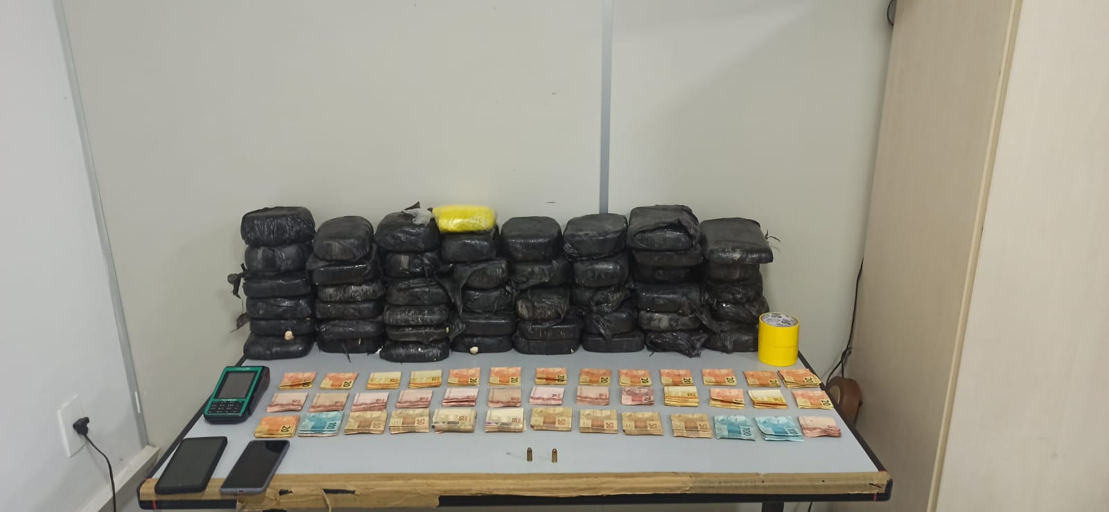 Durante a revista pessoal, foram encontrados e apreendidos aproximadamente 50 kg de pasta-base de cocaína, duas munições calibre 380, dois celulares e o veículo. Foram apreendidos, ainda, R$13,7 mil em espécie. A polícia calculou um dano de cerca de R$3,7 milhões ao crime.