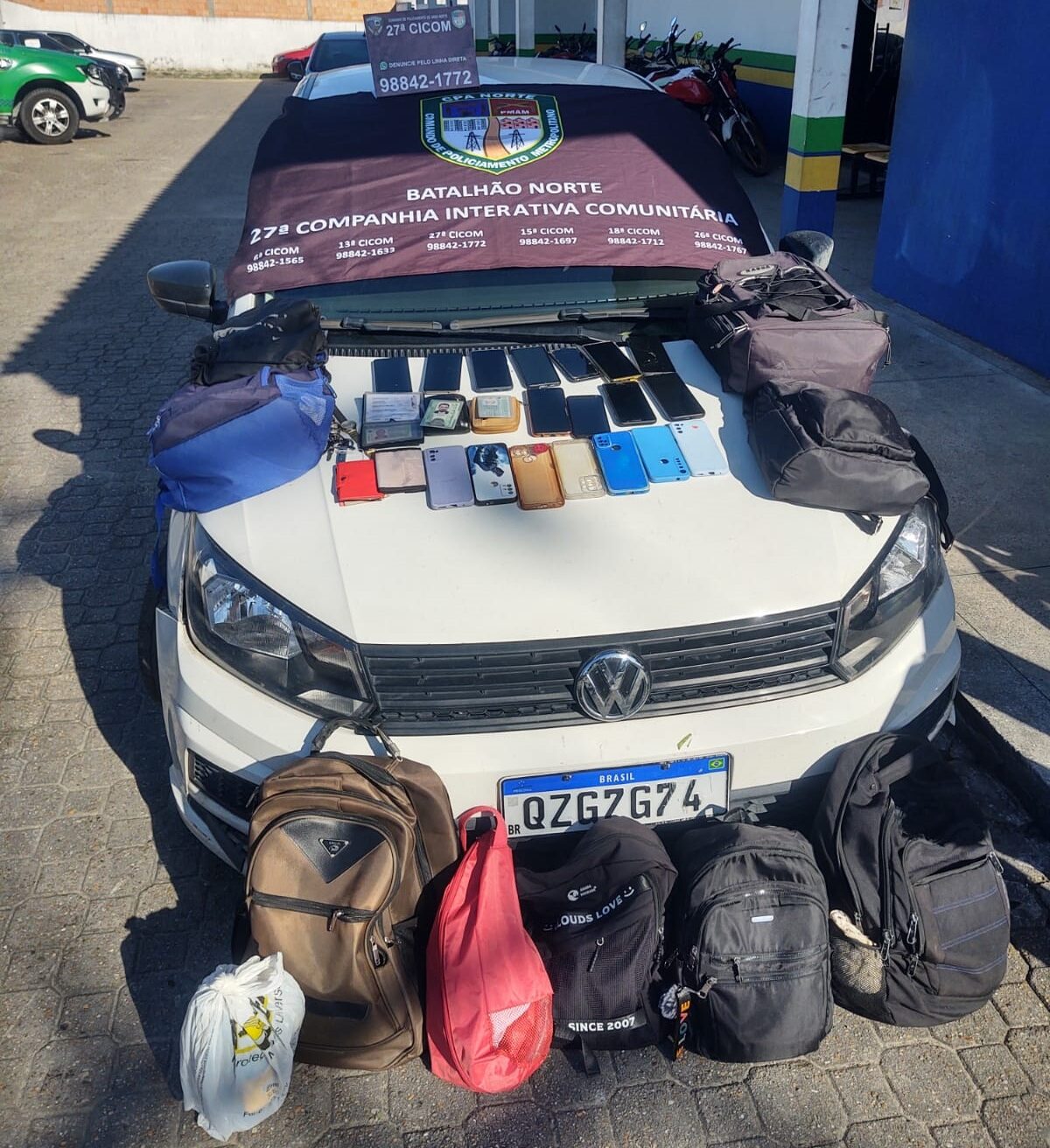 Foram apreendidos durante ação um carro, de placa QZG 7G74; uma motocicleta, de placa QZM OI55; além de 11 aparelhos celulares; três relógios, nove bolsas; e um cordão. Os veículos e os objetos recuperados foram encaminhados para o 6º Distrito Integrado de Polícia (DIP).
