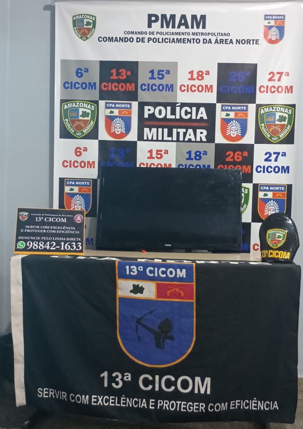 Os PMs apreenderam uma TV de 32 polegadas, que estava com o suspeito. O homem, junto com o material apreendido, foi conduzido ao 6° Distrito Integrado de Polícia (DIP).