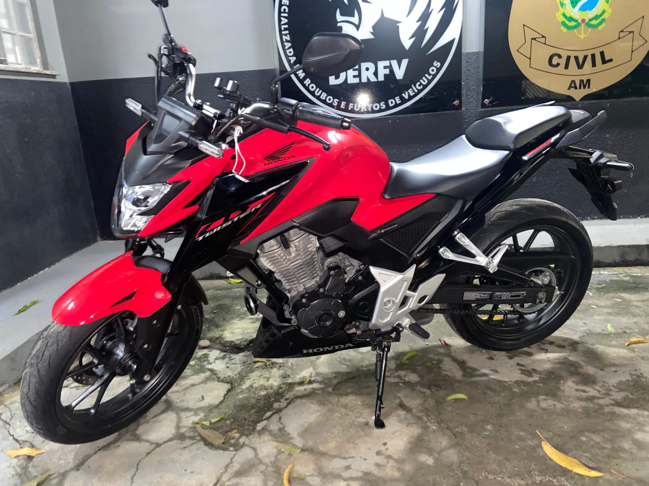 Ainda durante a noite, por volta das 21h30, PMs da Força Tática recuperaram uma motocicleta com restrição de roubo, no bairro Tarumã, zona oeste, e prenderam um homem, de 40 anos. Durante patrulhamento, a equipe visualizou o condutor pilotando o veículo sem capacete, em alta velocidade. A motocicleta não possuía placa. Após desobedecer à ordem de parada, ele foi abordado na rua Nova Veneza, comunidade Cidade das Luzes. A consulta ao chassi confirmou a restrição, e ele foi encaminhado ao 19° DIP.