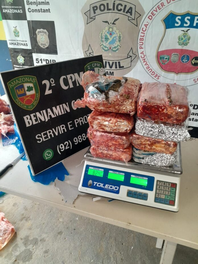 A Polícia Militar do Amazonas (PMAM), por meio do 8º Batalhão de Polícia Militar (BPM), apreendeu 13 kg de drogas, entre cocaína e maconha, armazenadas em forma de tabletes, durante ações desencadeadas na tarde de quarta-feira (20/05), pela equipe da 2ª Companhia de Polícia Militar (CPM) e que contaram com apoio do cão de faro “Hulk”, no município de Benjamin Constant (a 1.121 quilômetros de Manaus). E uma das ocorrências, um homem, de 49 anos, foi preso.