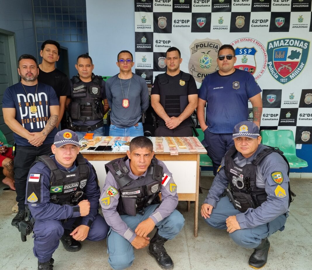 A Polícia Civil do Amazonas (PC-AM), por meio da 62ª Delegacia Interativa de Polícia (DIP) de Canutama (a 619 quilômetros de Manaus), em conjunto com a Polícia Militar do Amazonas (PMAM) e a Guarda Civil Municipal (GCM), prendeu em flagrante, neste sábado (11/05), Ebson Gomes da Silva, 34, conhecido como “Caboco”, por tráfico de drogas e crime ambiental. A prisão ocorreu na rua Benjamin Constant, no Centro de Canutama.
