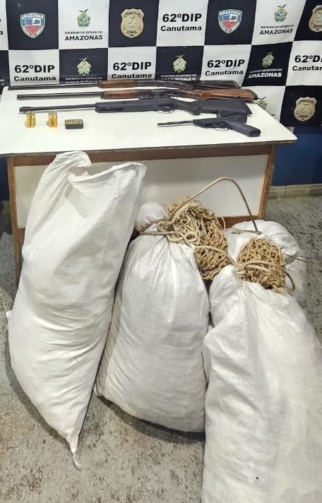 A Polícia Militar do Amazonas (PMAM), por meio 4ª Companhia Independente de Polícia Militar (CIPM), prendeu, na tarde de quinta-feira (12/06), um homem, de 34 anos, suspeito de envolvimento em crime ambiental. A operação conjunta realizada por policiais militares do 1º Pelotão de Polícia Militar (PEL) e servidores da Secretaria de Estado do Meio Ambiente (Sema) resultou na apreensão de três armas de fogo e materiais utilizados para pesca predatória, na zona rural de Canutama (a 619 quilômetros de Manaus).