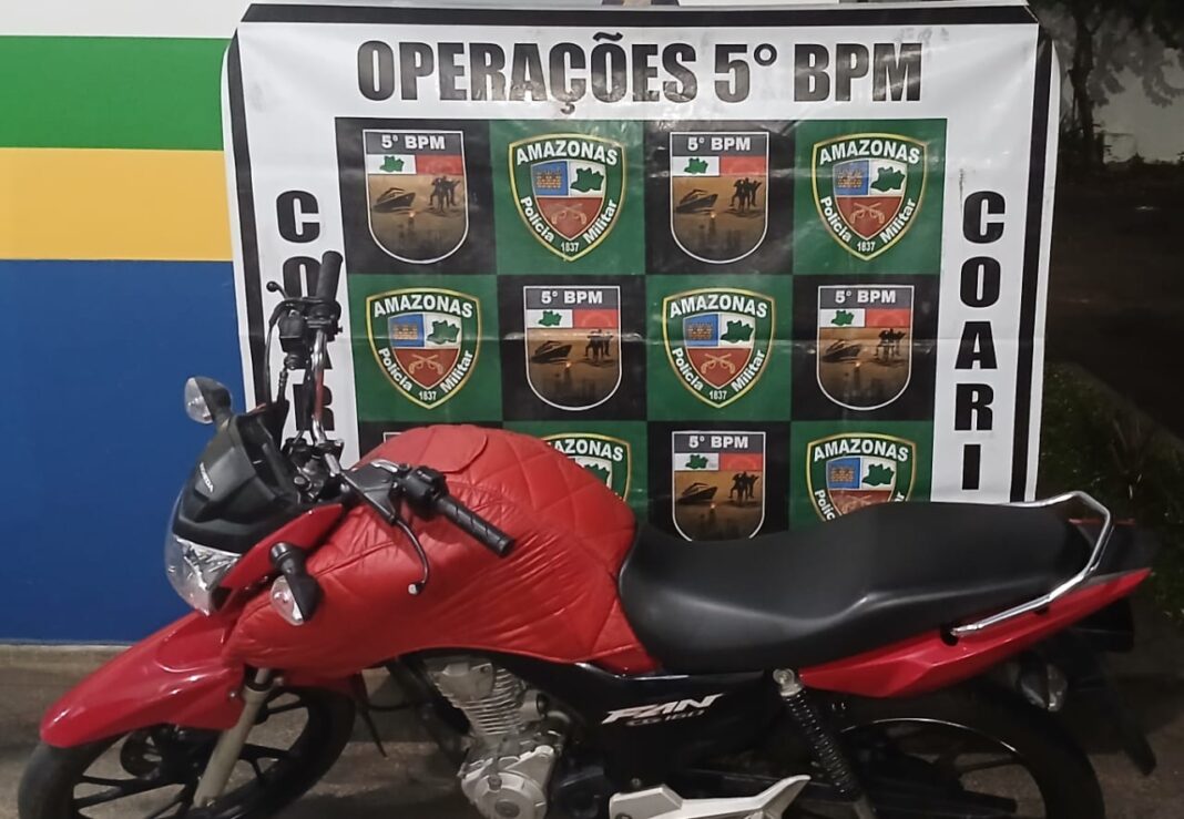 A ação aconteceu por volta das 21h30, na rua do Cal, quando a equipe da PMAM avistou a dupla em atitude suspeita. Ao perceberem a presença da viatura policial, os dois homens tentaram fugir, mas foram abordados pelos policiais militares. Eles estavam em uma motocicleta vermelha, sem placa e, durante a verificação, foi constatado que o veículo havia sido roubado entre a noite de sábado e a madrugada de domingo.