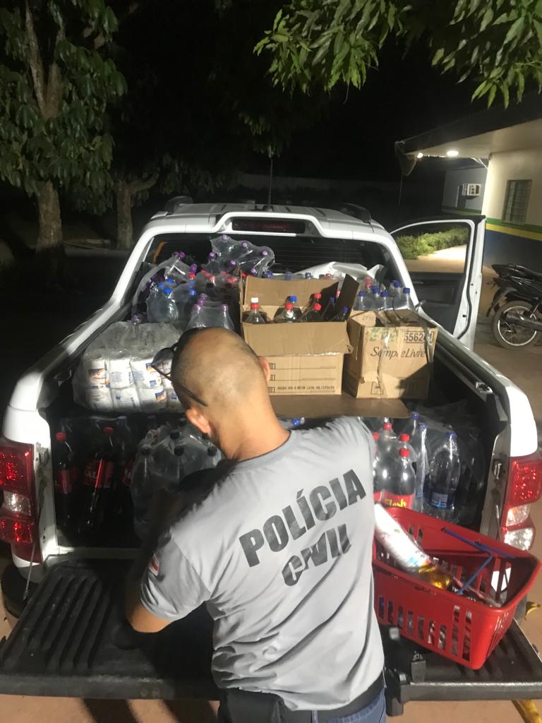 As mercadorias foram parcialmente recuperadas e devolvidas ao proprietário do supermercado.