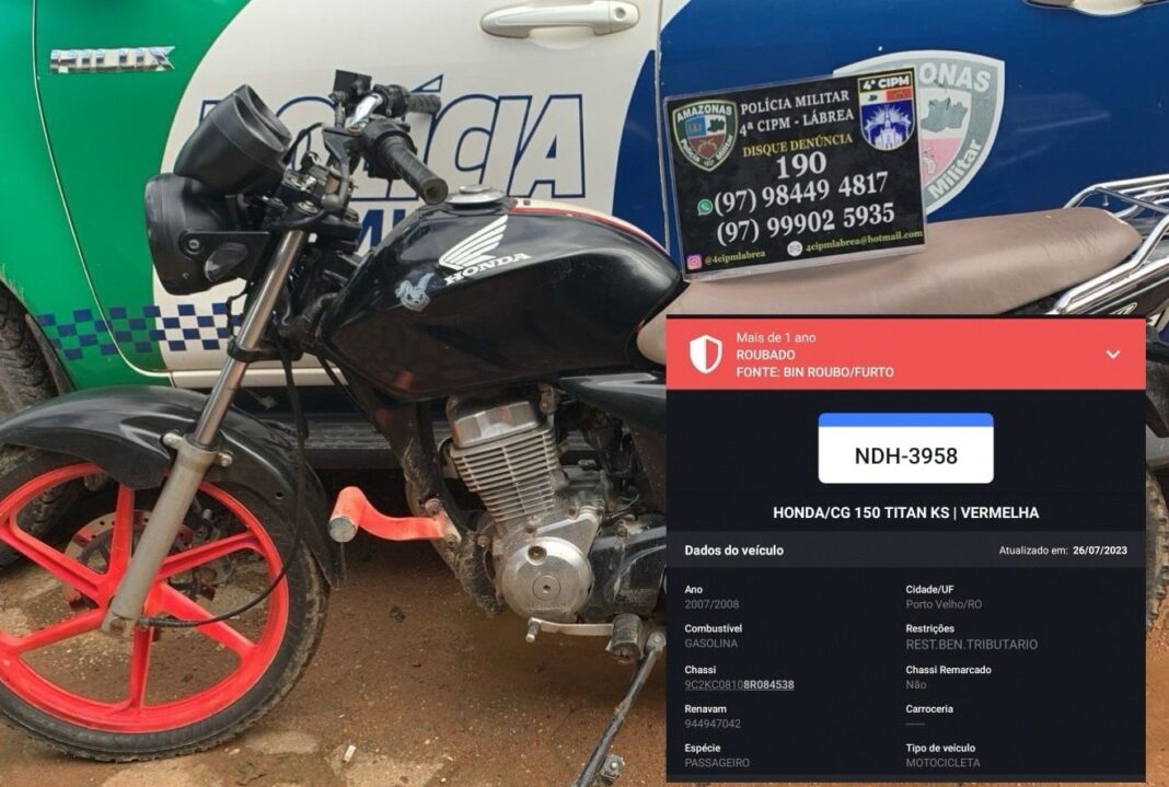 Após averiguação minuciosa, foi constatado que a motocicleta seria registrada na cidade de Porto Velho (RO) e que possuía restrição de roubo ou furto. Diante disso, o condutor e o veículo foram conduzidos à 6ª Delegacia Interativa de Polícia Civil (DIPCL) de Lábrea.