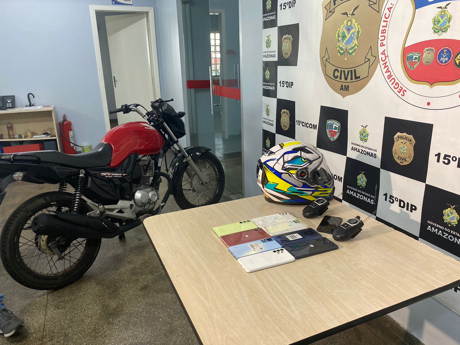 “No local conseguimos recuperar dez celulares oriundos do crime, e a motocicleta utilizada na ação criminosa. As diligências seguem para localizarmos Guilherme e Rodrigo, que foi o responsável por auxiliar no roubo cedendo as armas”, disse Cícero Túlio.