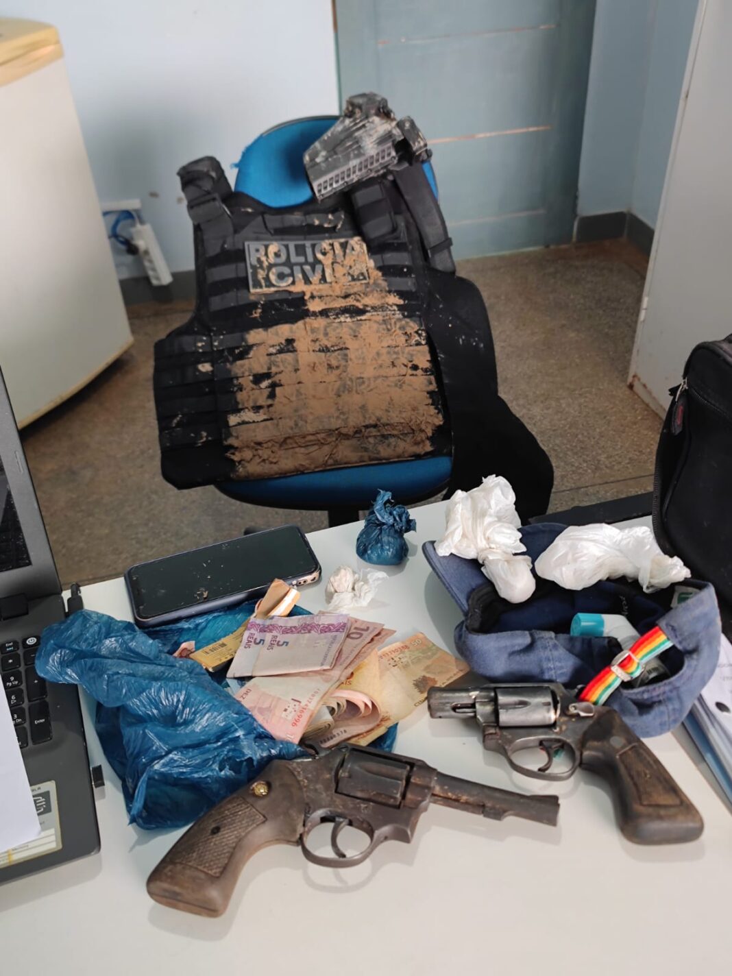 Ainda segundo a autoridade policial, Rialison estava em posse de drogas e uma quantia em dinheiro trocado em cédulas de pequeno valor. Já José Euclídes tentou fugir, mas foi capturado, e com ele também foi encontrado material entorpecente e uma arma de fogo.