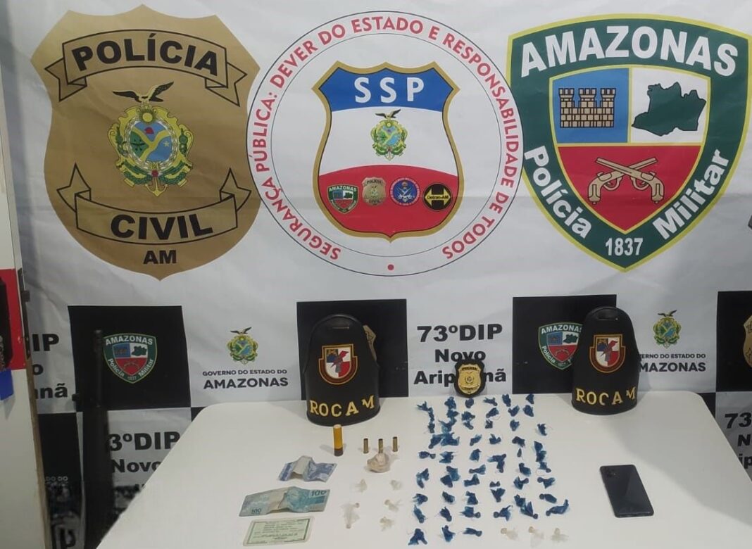 A Polícia Civil do Amazonas (PC-AM), por meio da 73ª Delegacia Interativa de Polícia (DIP) de Novo Aripuanã (a 227 quilômetros de Manaus), em conjunto com policiais militares das Rondas Ostensiva Cândido Mariano (Rocam), prendeu em flagrante, na quinta-feira (09/05), Amilson da Mota Pavão Neto, 22, por tráfico de drogas e posse ilegal de arma. A prisão aconteceu no Centro do município.