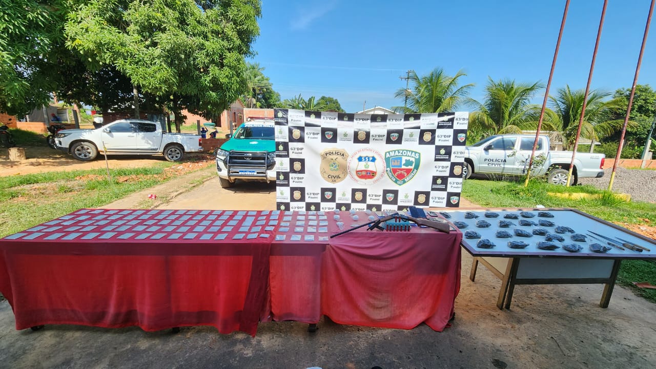 A Polícia Civil do Amazonas (PC-AM), por meio da 63ª Delegacia Interativa de Polícia (DIP) de Pauini (a 923 quilômetros de Manaus), em conjunto com a Polícia Militar do Amazonas (PMAM), deflagrou, nesta quinta-feira (21/12), a segunda fase da Operação Deserto, que resultou na apreensão de substâncias entorpecentes, armas de fogo e munições, pertencentes a uma célula de um grupo criminoso na zona rural do município.