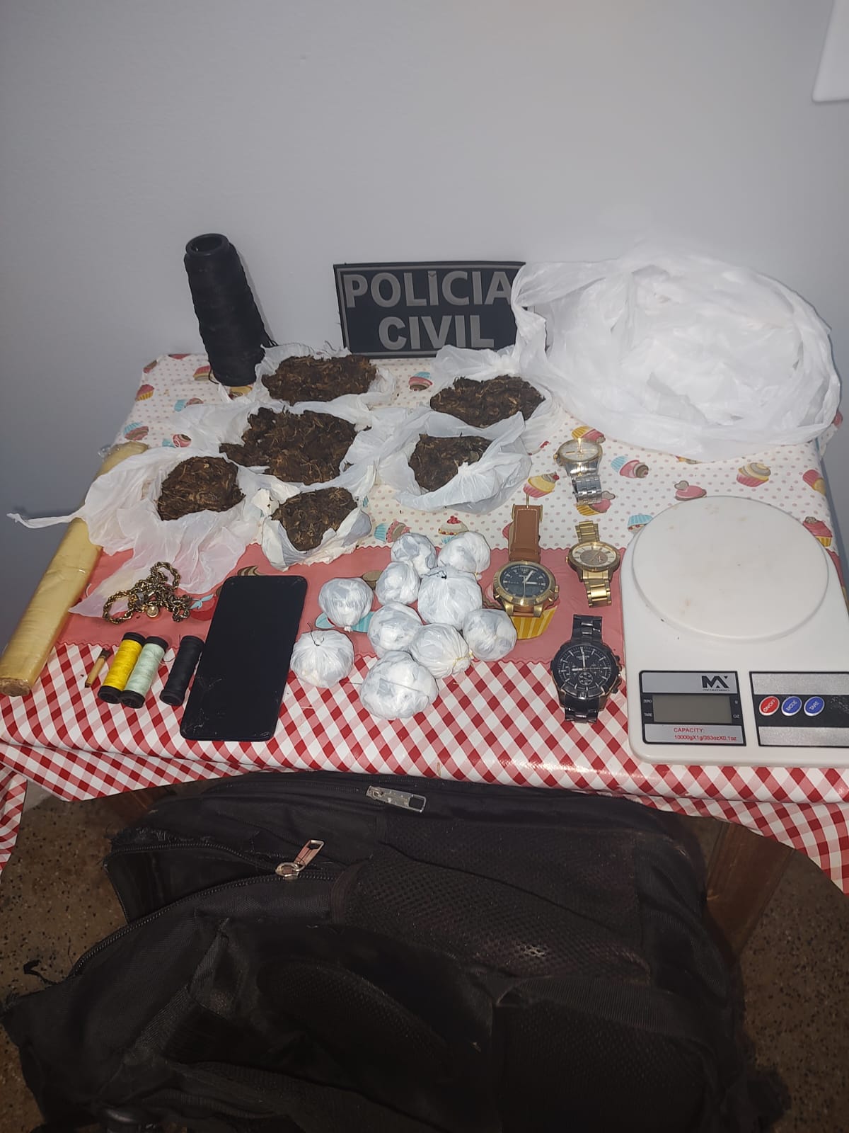 “Durante as diligências no bairro Aida Mendonça, verificamos que os infratores estavam embalando o material ilícito para, posteriormente, ser comercializado. No local apreendemos, ainda, quatro relógios de pulso, um aparelho celular, uma balança de precisão, linhas de costura, plástico filme e sacolas plásticas”, informou o delegado.