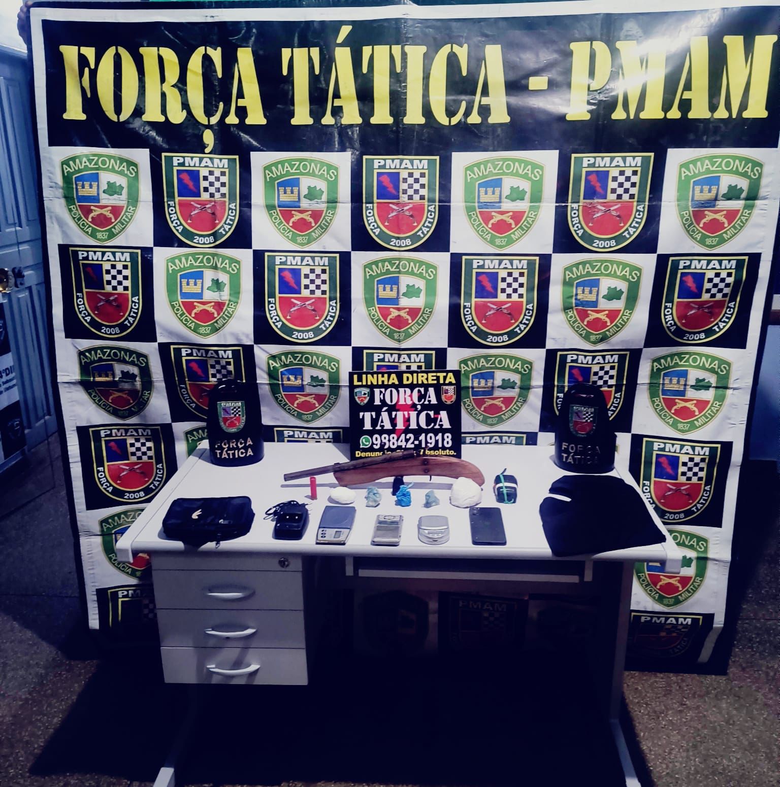 Os policiais da Força Tática, da Polícia Militar do Amazonas (PMAM) estavam em patrulhamento na rua Amazonas, quando avistaram os indivíduos tentando fugir. Durante perseguição, um dos homens foi detido em frente ao kitnet onde era comercializado os entorpecentes e os outros dois adentraram o imóvel.