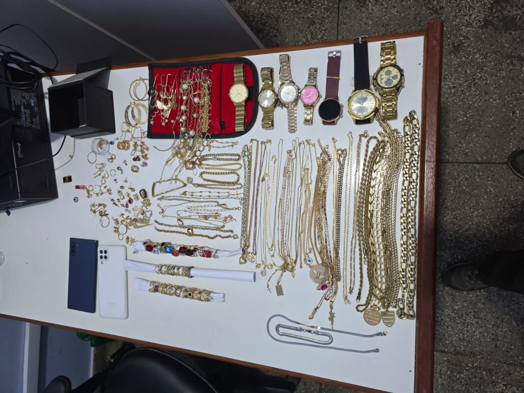 Segundo o delegado, além do cumprimento do mandado de prisão, no local foram apreendidas drogas, quantias em dinheiro, duas munições intactas, dois aparelhos celulares, joias, bijuterias, relógios e outros objetos provavelmente oriundos dos furtos.
