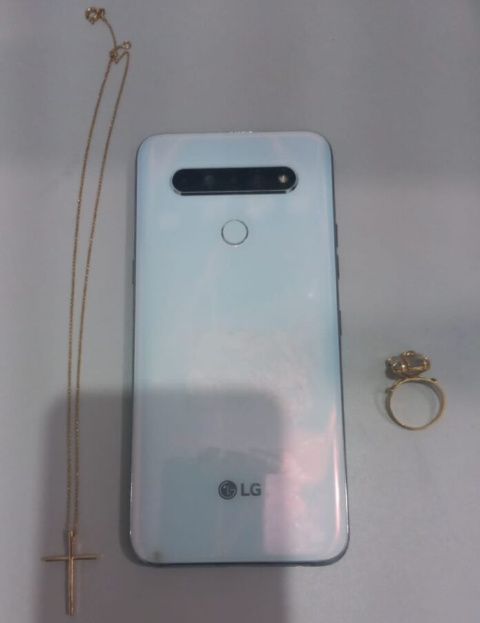 Durante a revista pessoal, foram encontrados com ele um cordão com uma medalha, um anel e um celular. Questionado pelos policiais sobre a origem dos objetos, o suspeito confessou que estes teriam sido adquiridos após um furto a uma residência.