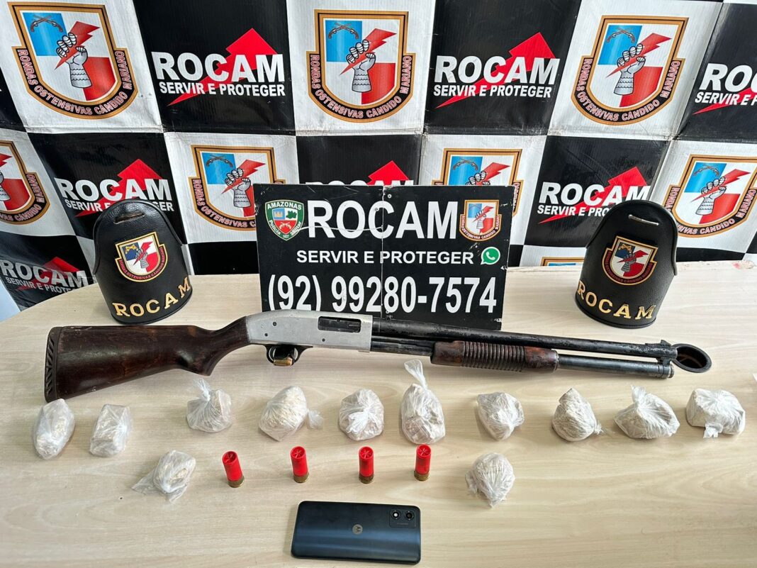 Durante a operação Protetor das Fronteiras/Fronteira Mais Segura, coordenada pela Secretaria de Estado de Segurança Pública (SSP-AM), os policiais militares das Rondas Ostensivas Cândido Mariano (Rocam) apreenderam, porções de entorpecentes, uma arma de fogo e munições na manhã deste sábado (04/05), no município do Rio Preto da Eva (a 57 quilômetros de Manaus). Ainda na ação, duas pessoas foram presas.