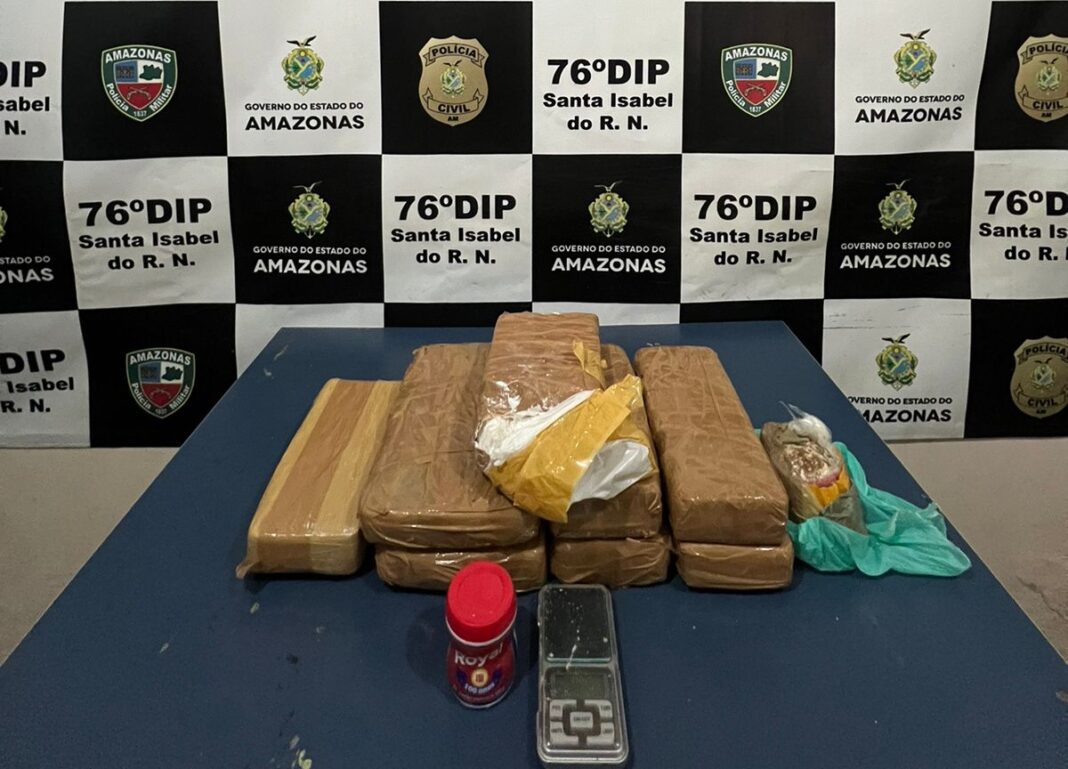 Policiais civis da 76ª Delegacia Interativa de Polícia (DIP) de Santa Isabel do Rio Negro (a 630 quilômetros de Manaus), prenderam, em flagrante, na quinta-feira (25/01), Elomar Azevedo Araújo, 24, em posse de cocaína, maconha tipo skunk, crack, balança de precisão e apetrechos para o embalo dos entorpecentes. O prejuízo ao tráfico de drogas está avaliado em R$ 207 mil.