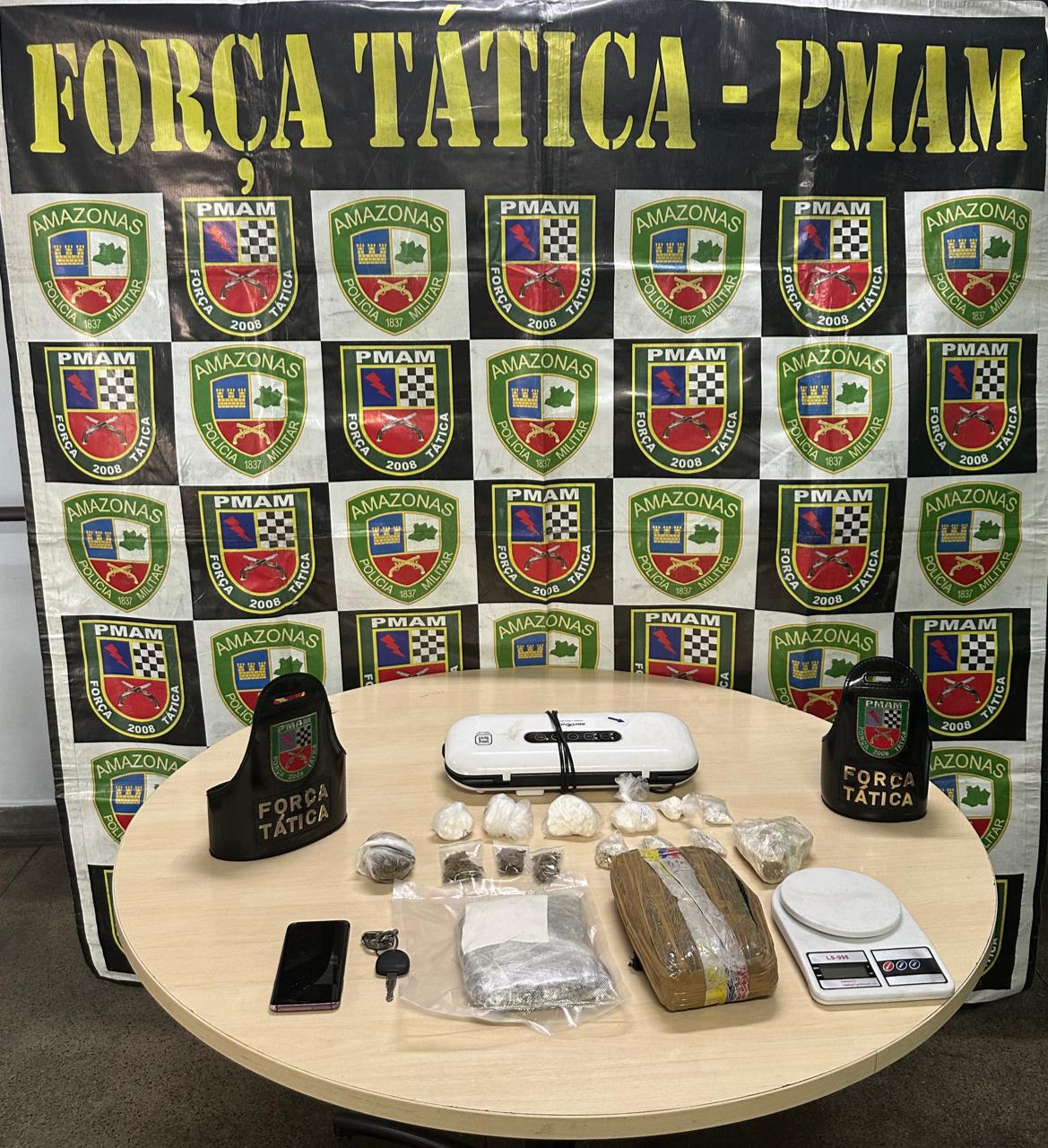 A Polícia Militar do Amazonas (PMAM), por meio da Força Tática, prendeu um homem, de 36 anos, pelo crime de tráfico de drogas, na tarde desta terça-feira (06/02), na rua Fragata, bairro Petrópolis, zona sul de Manaus.