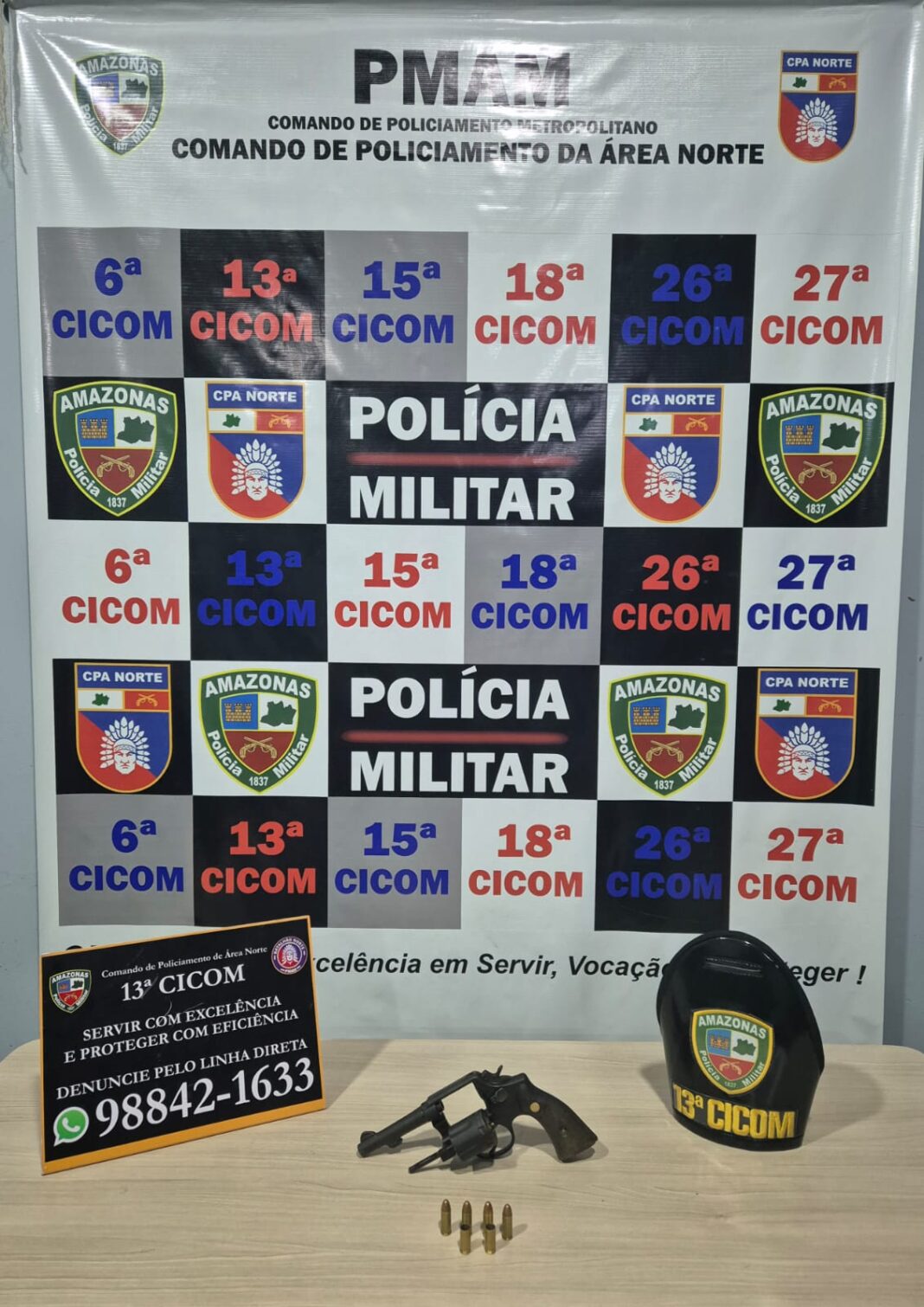 A Polícia Militar do Amazonas (PMAM), por meio da 13ª Companhia Interativa Comunitária (Cicom), prendeu, na noite de quarta-feira (28/02), um homem, de 26 anos, em posse de arma de fogo, no bairro Cidade de Deus, zona norte de Manaus.