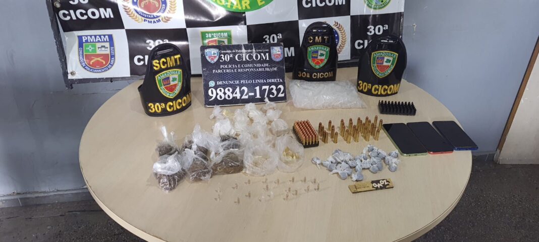 A Polícia Militar do Amazonas (PMAM), por meio da 30ª Companhia Interativa Comunitária (Cicom), prendeu, na quinta-feira (08/02), um homem, de 23 anos, pelo crime de tráfico de drogas e porte de munições de uso restrito e permitido. A ocorrência foi atendida na rua Jerusalém, bairro Valparaíso, zona leste de Manaus.