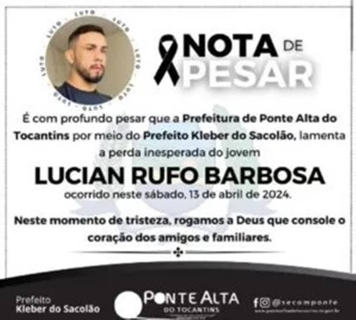Ele também era servidor da Secretaria de Estado da Educação (Seduc). A prefeitura de Ponte Alta do Tocantins divulgou uma nota lamentando a morte do influenciador. “Nesse momento de tristeza, rogamos a Deus que console os corações de amigos e familiares”, diz o comunicado.