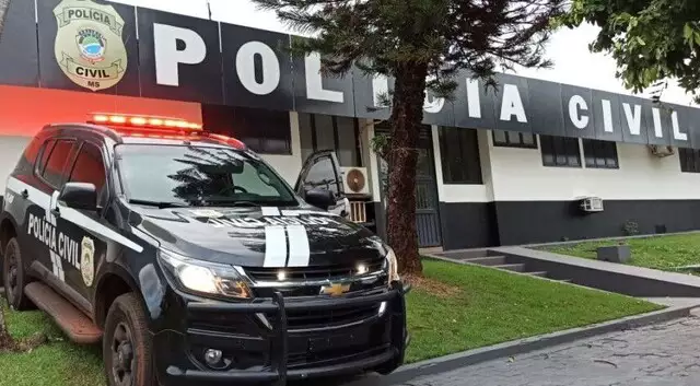 Viatura em frente à Delegacia de São Gabriel do Oeste onde caso foi registrado (Foto: Veja Aqui MS)