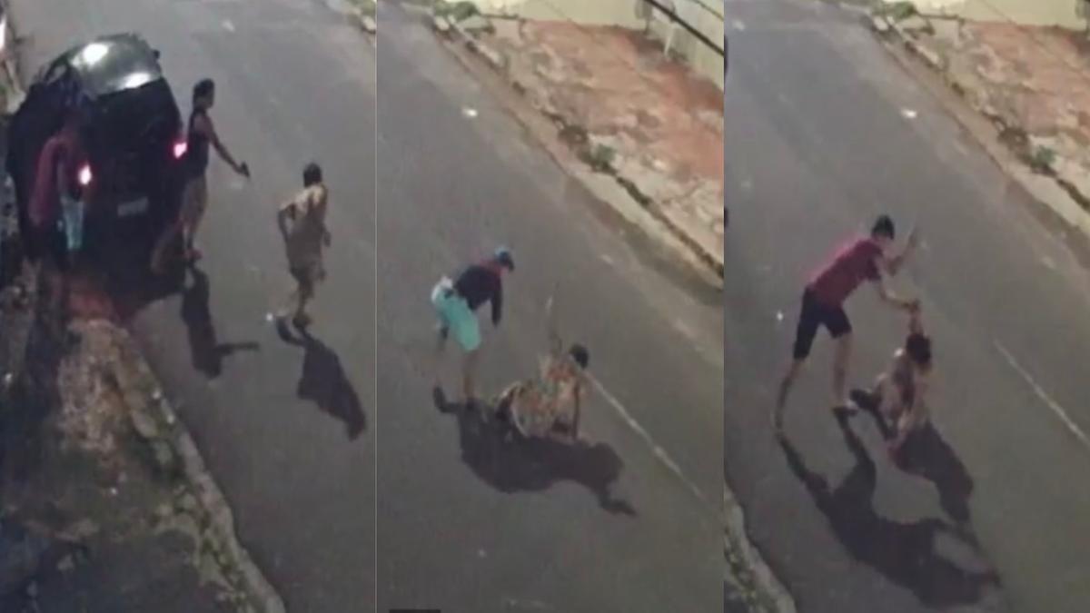 Em seguida dois homens saem do carro com uma provável barra de ferro e agride Macedo na cabeça. A vítima ainda recebe uma pedrada, também na cabeça, do terceiro criminoso. Macedo é deixado caído no asfalto enquanto os traficantes fogem.