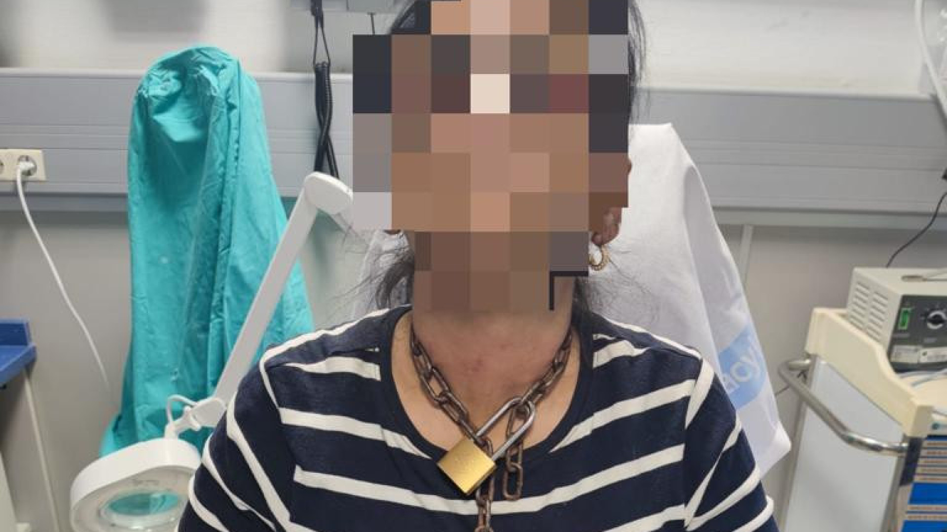 O caso foi descoberto depois que a vítima deu entrada no hospital com uma corrente e um cadeado presos ao pescoço.