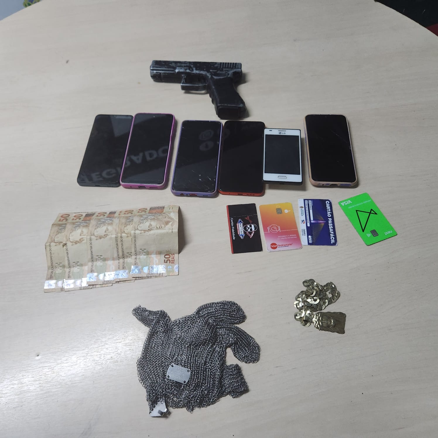 Durante abordagem, foi constatado que a dupla utilizou um simulacro para cometer o crime. O segundo indivíduo e a vítima foram encaminhados ao 1º Distrito Integrado de Polícia (DIP).