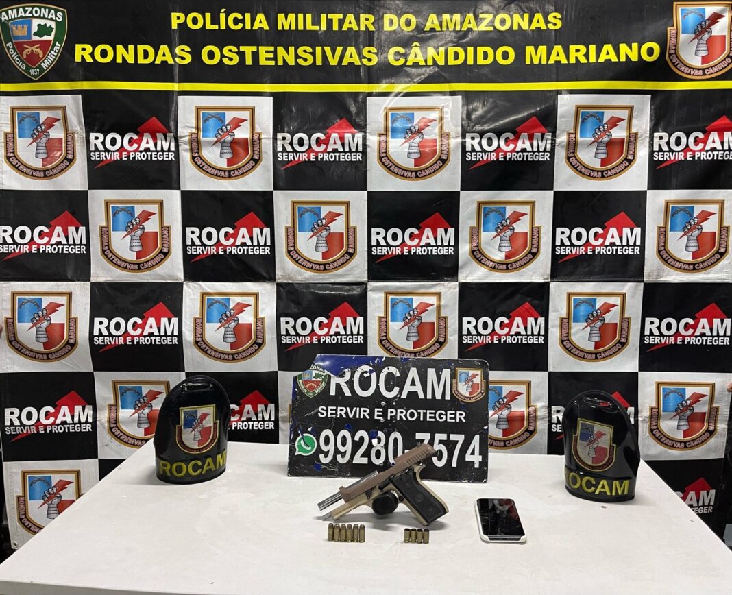 A Polícia Militar do Amazonas (PMAM), por meio da Rondas Ostensivas Cândido Mariano (Rocam), deteve um homem de 22 anos e apreendeu uma arma de fogo, durante ação na tarde de quinta-feira (15/12), no bairro Colônia Oliveira Machado, zona sul de Manaus. O suspeito já tinha passagem pela polícia por tráfico de drogas e porte ilegal de arma de fogo.